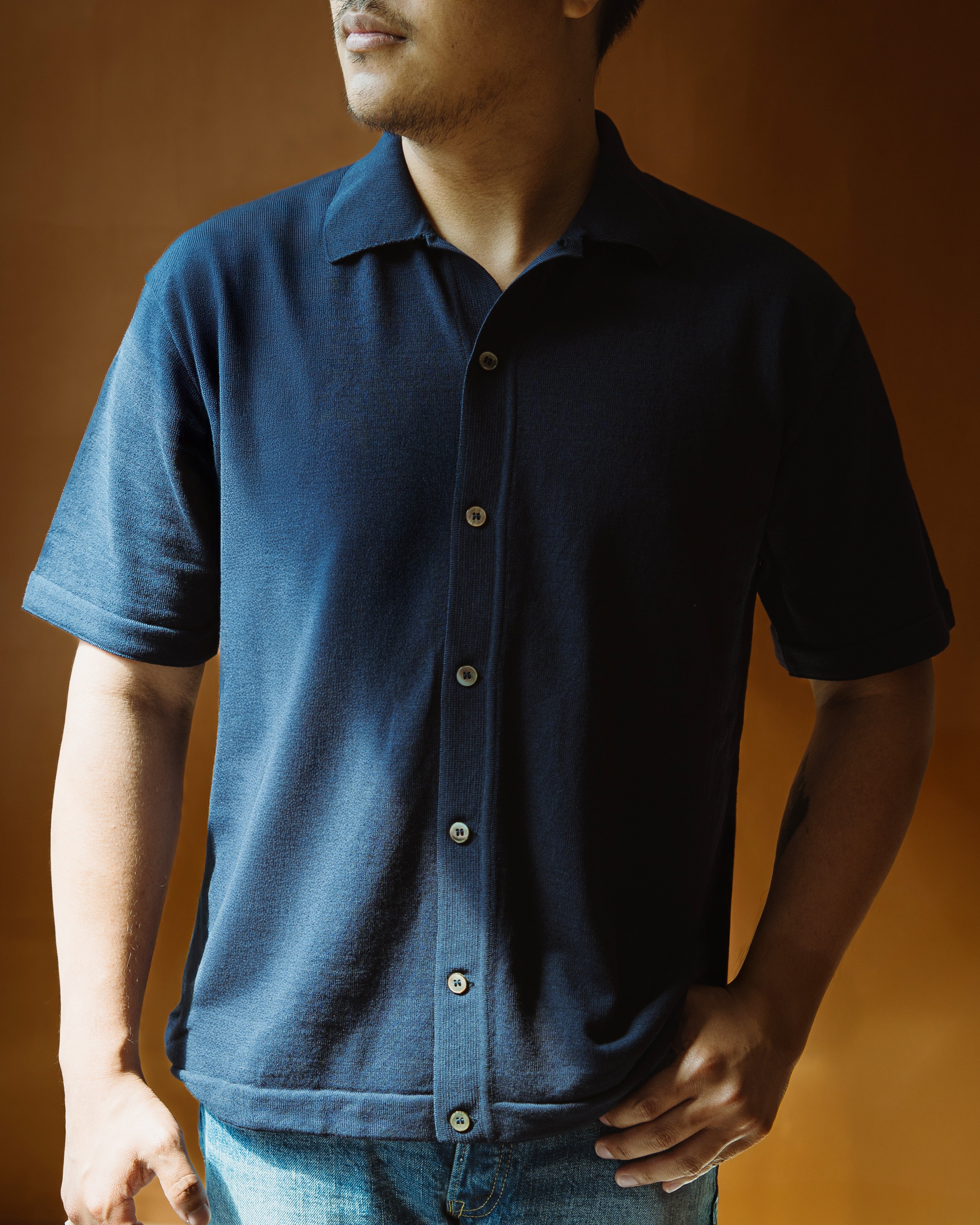 Ice Cotton Open Collar Shirt IC6 | Navy