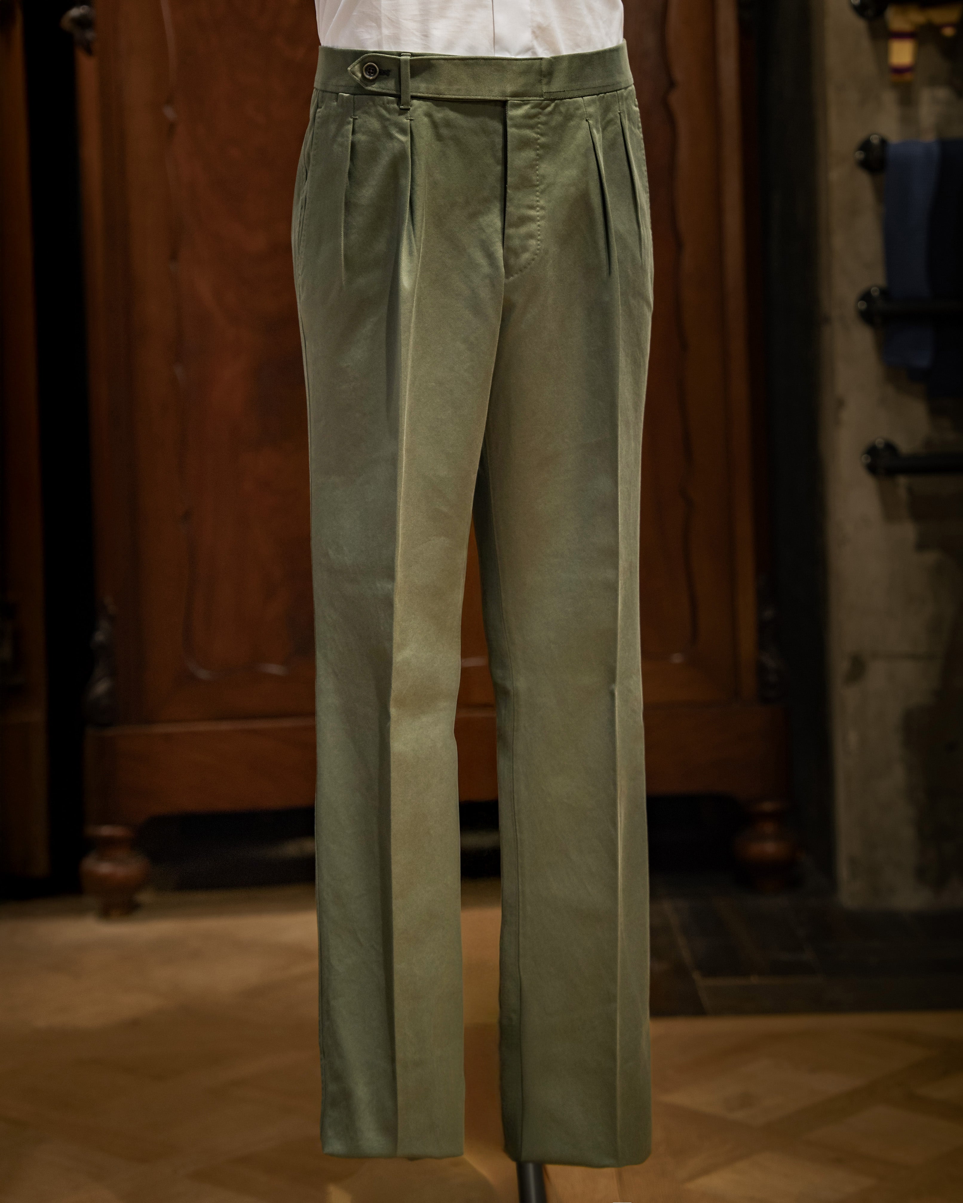 Cinch Back Cotton Chino Trouser RC075F01E | Olive