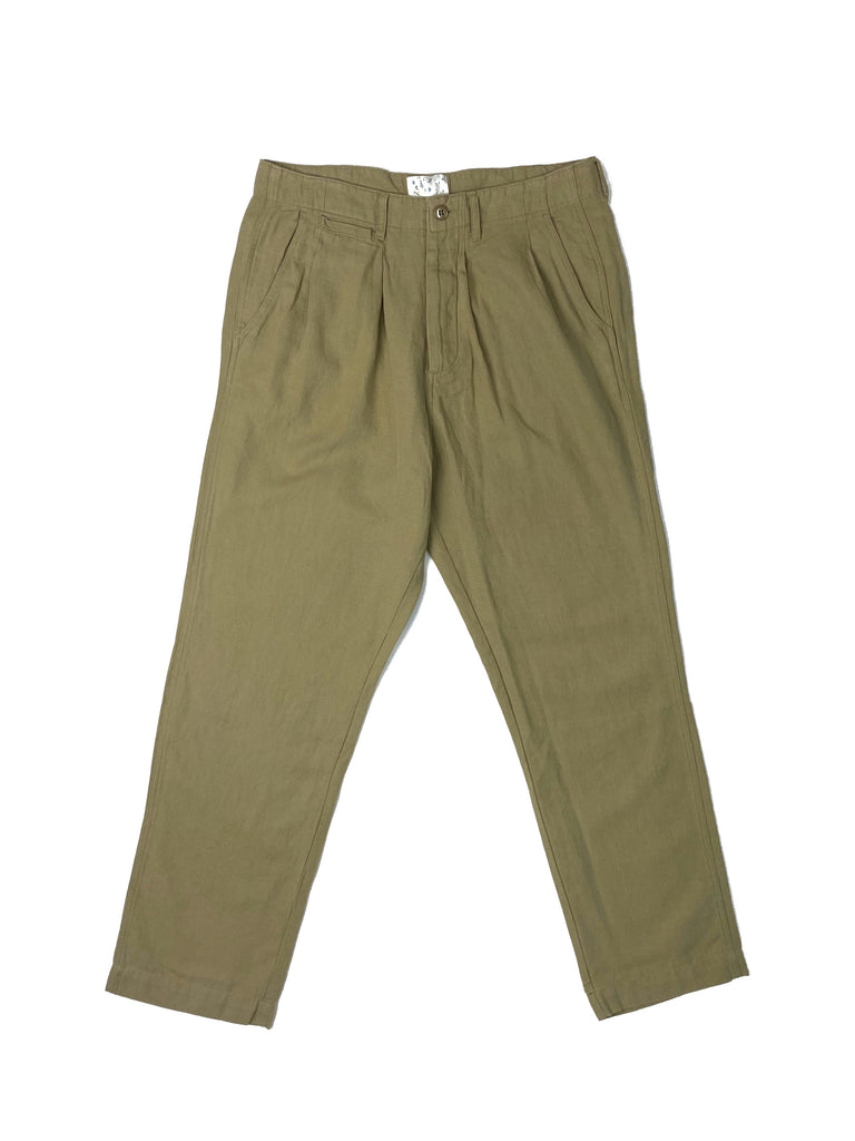 Pleated Cotton/ Linen Chinos | Camp Khaki