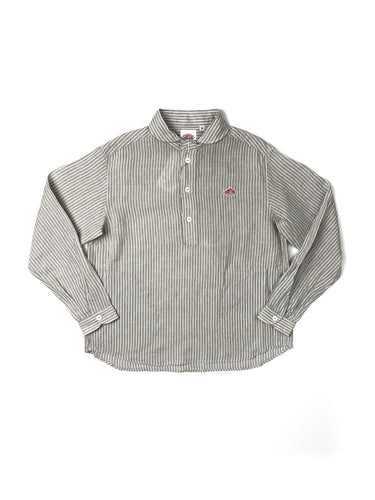 Their classic round collar shirt in breathable and crisp linen. Features a blouse-y loose fit.